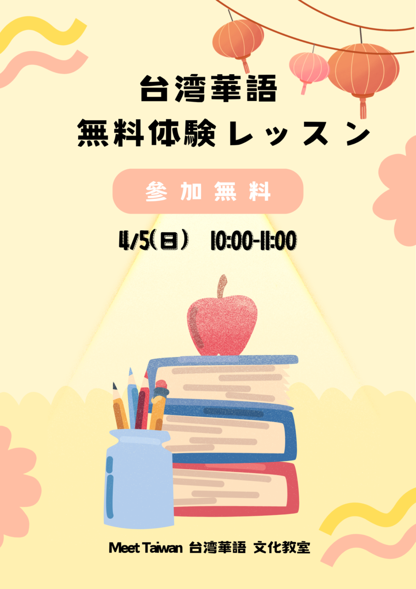 4/5 (日) 台湾華語無料体験レッスン申し込み中!!